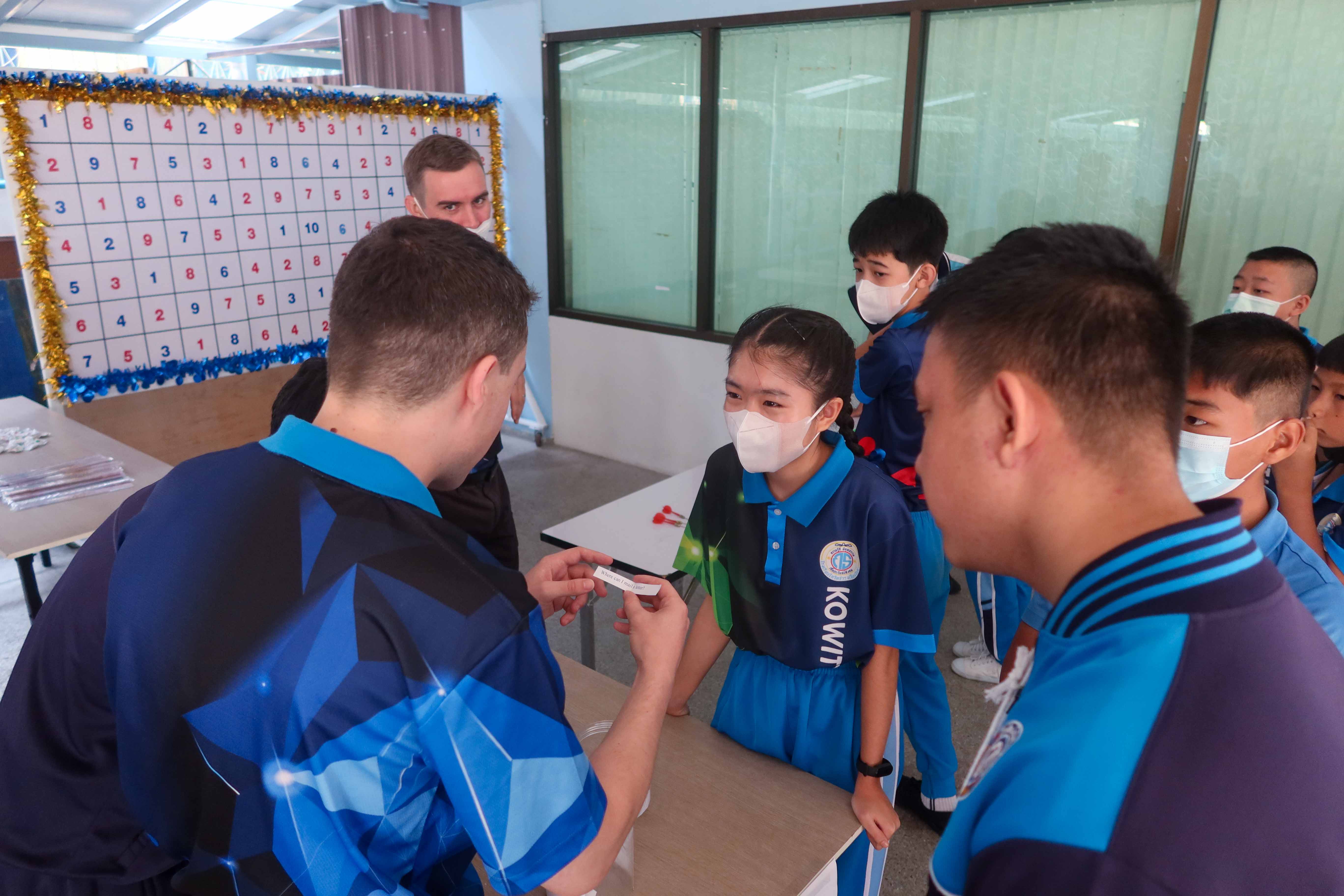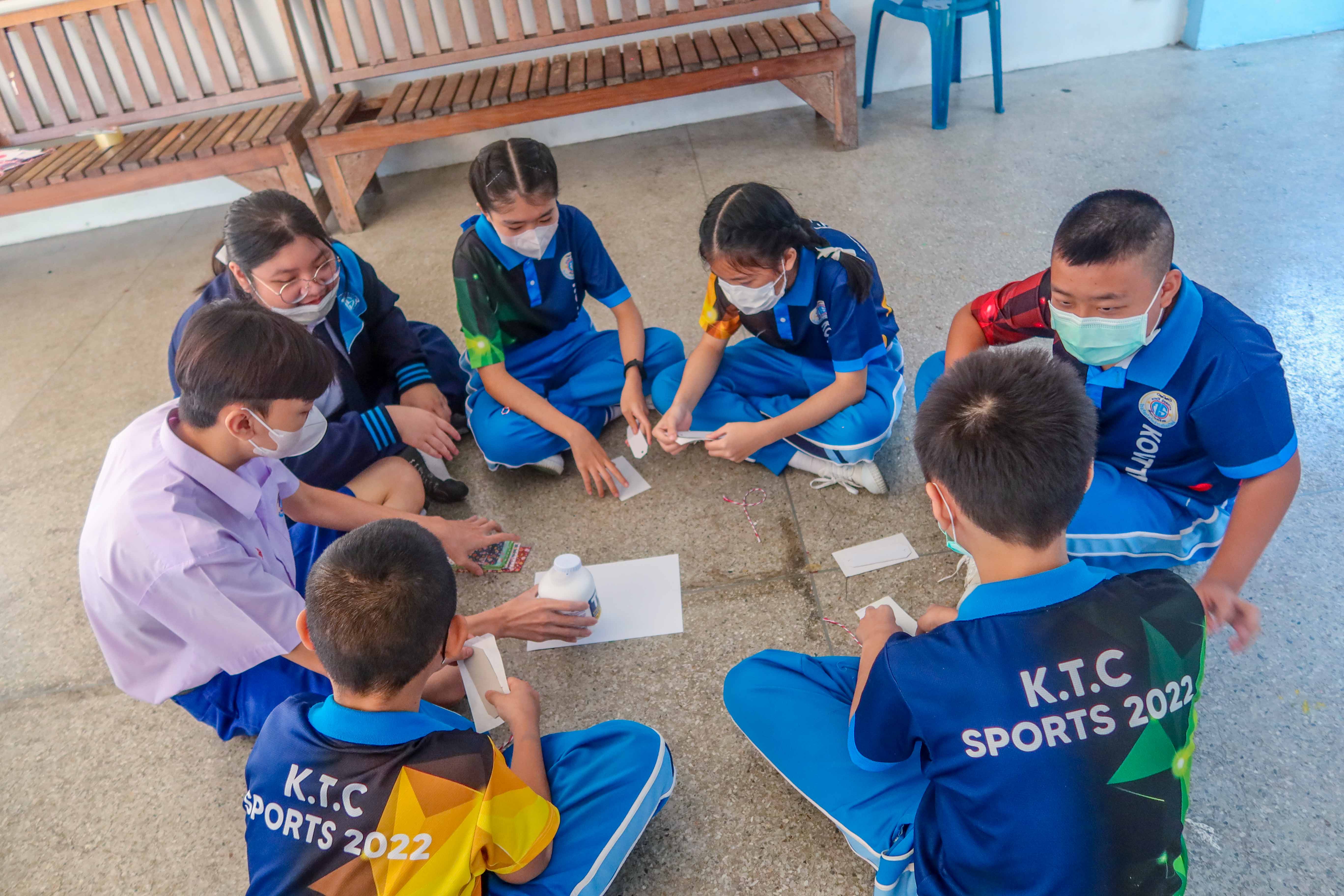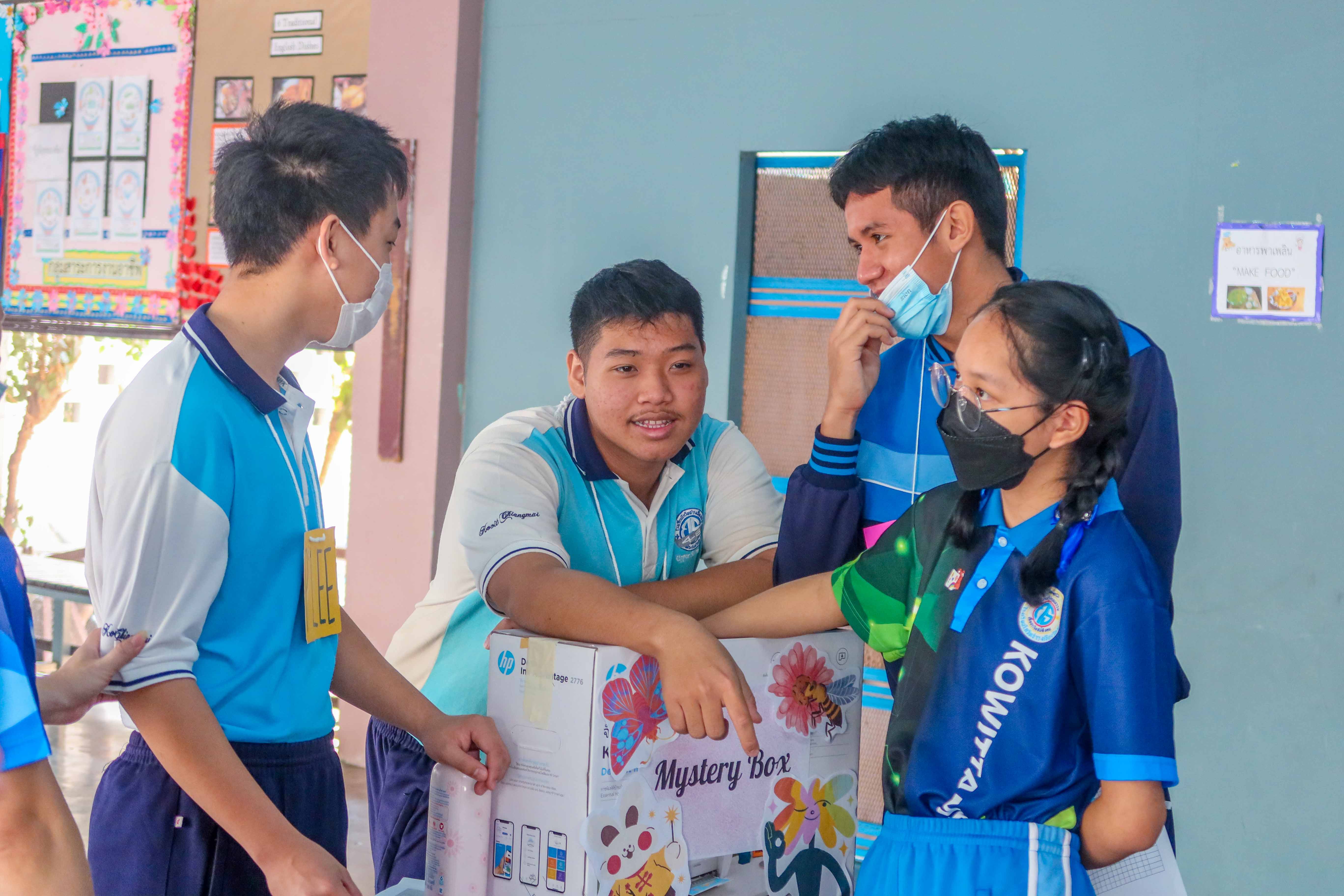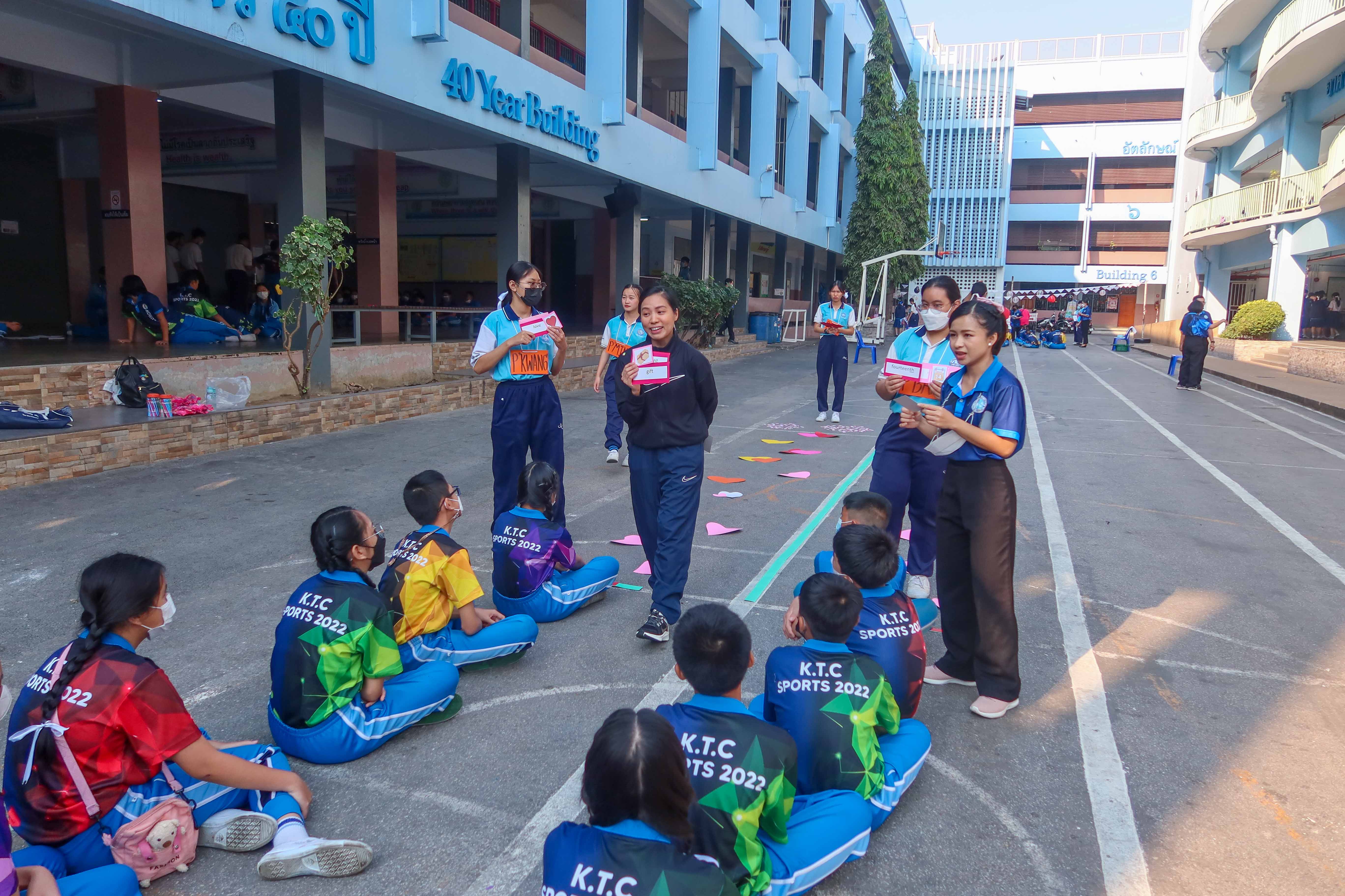 Communicative skills through activities designed by both foreign and Thai teachers on February 14, 2023. The activities aimed to provide students with opportunities to enhance their English communicative skills by interacting directly. Each activity focused on fostering teamwork, encouraging students to accept their peers’ opinions and ideas, and building positive relationships among participants.