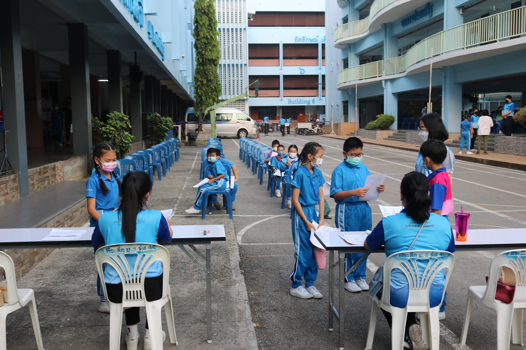 รายละเอียดข่าว : หน่วยเสริมสร้างสุขภาพ โรงพยาบาลมหาราชนครเชียงใหม่ ให้บริการฉีดวัคซีน Pfizer ฝาสีส้ม เข็มที่ 1 กับนักเรียนชั้น ป. 3-4 (อายุ 5-11 ปี) ทั้งนี้ขอขอบคุณสำนักงานศึกษาธิการจังหวัดเชียงใหม่ ที่ประสานการดำเนินงาน รวมถึง คณะแพทย์ พยาบาล และเจ้าหน้าที่ โรงพยาบาลมหาราชนครเชียงใหม่ ที่ให้ความอนุเคราะห์แก่นักเรียนของเราในการเข้ารับวัคซีนครั้งนี้ เมื่อวันพฤหัสบดีที่ 17 มีนาคม 2565 ณ โรงเรียนโกวิทธำรงเชียงใหม่