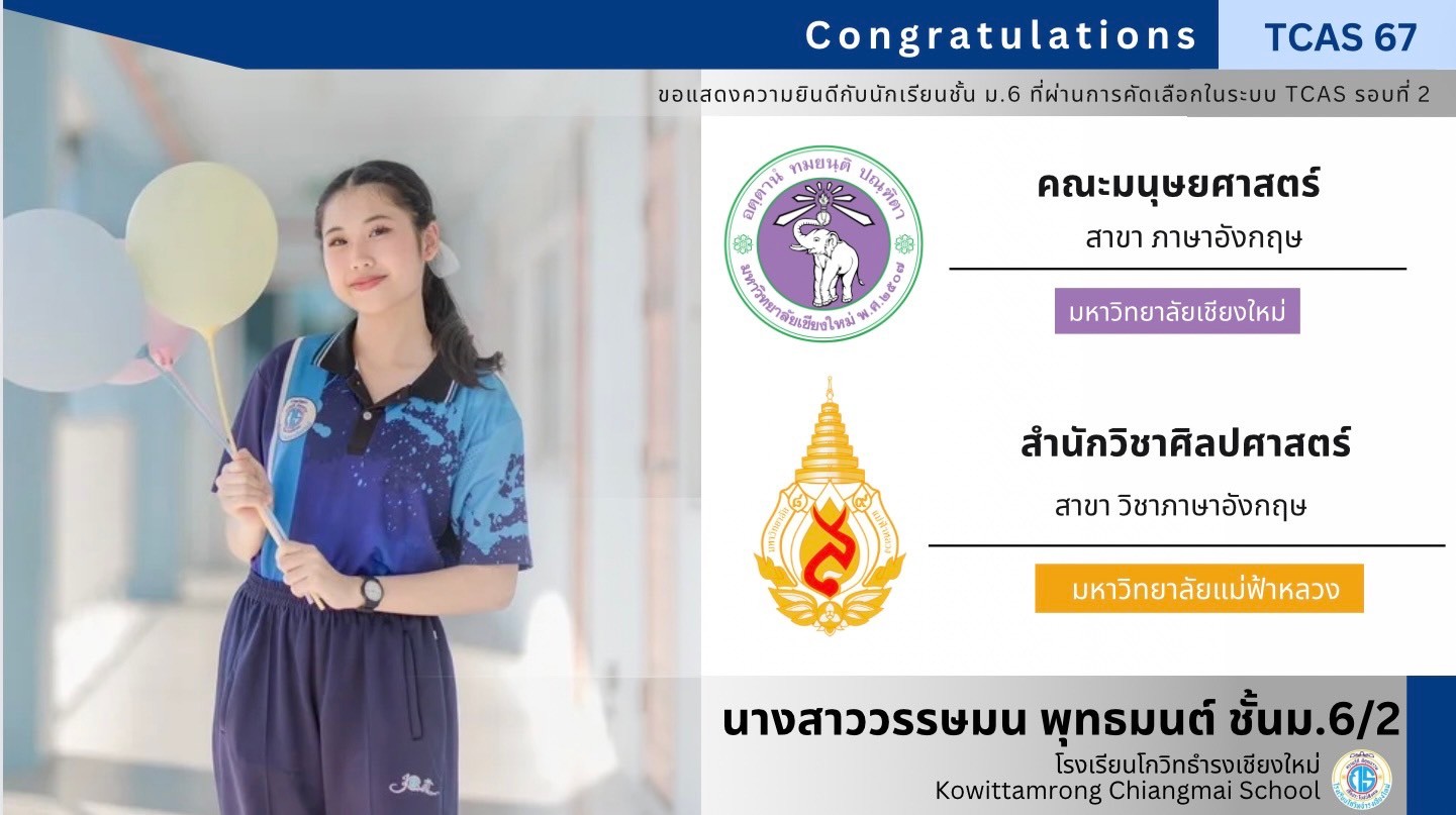 ข่าวประกาศ : ขอแสดงความยินดีกับนักเรียนระดับชั้นประถมศึกษาปีที่ 6 มัธยมศึกษาปีที่ 3 และมัธยมศึกษาปีที่ 6 ของโรงเรียนโกวิทธำรงเชียงใหม่