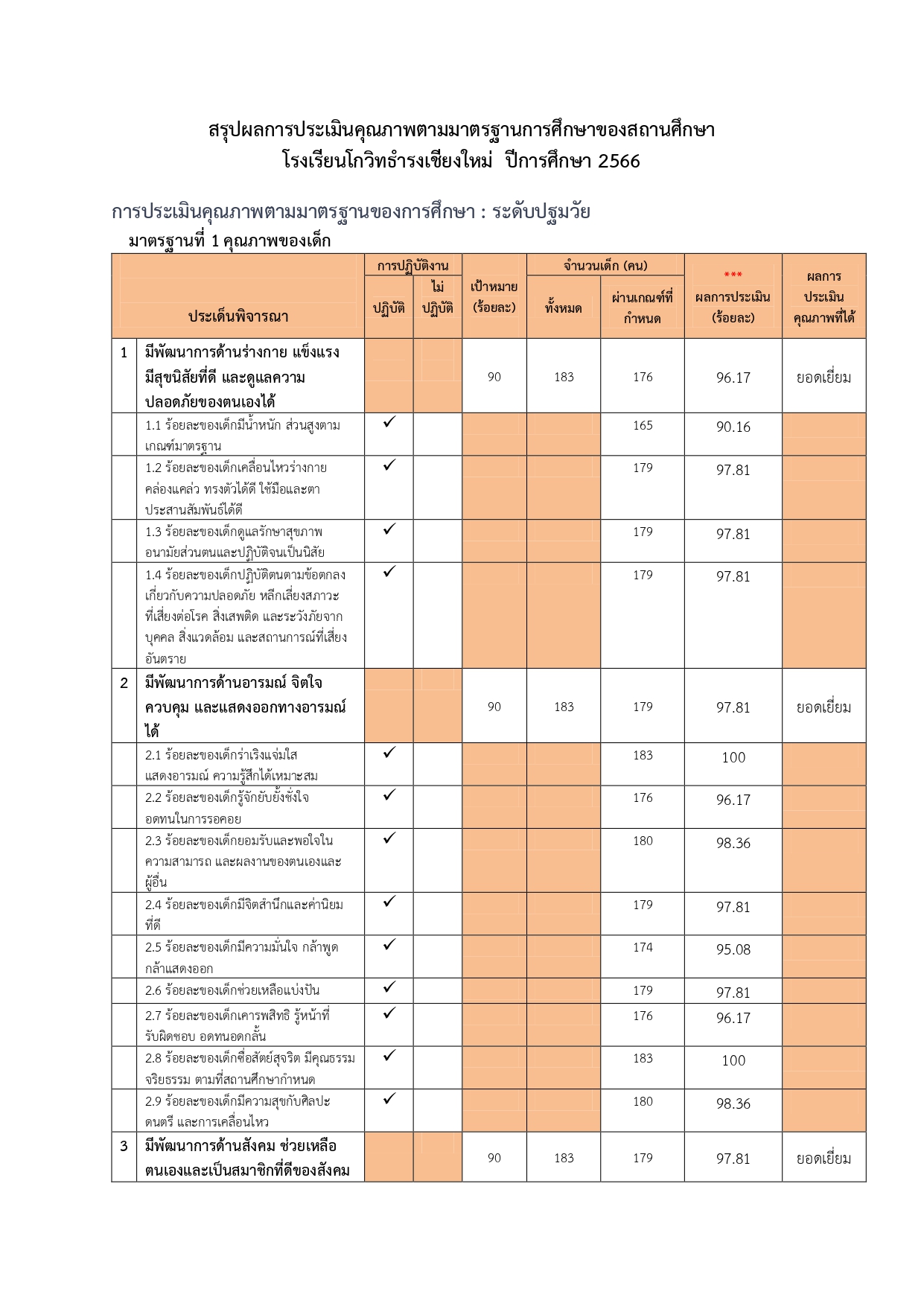 ข่าวประกาศ : ผลการประเมินตามมาตรฐานการศึกษาของสถานศึกษา ปีการศึกษา 2567 โรงเรียนโกวิทธำรงเชียงใหม่ (ระดับปฐมวัย)